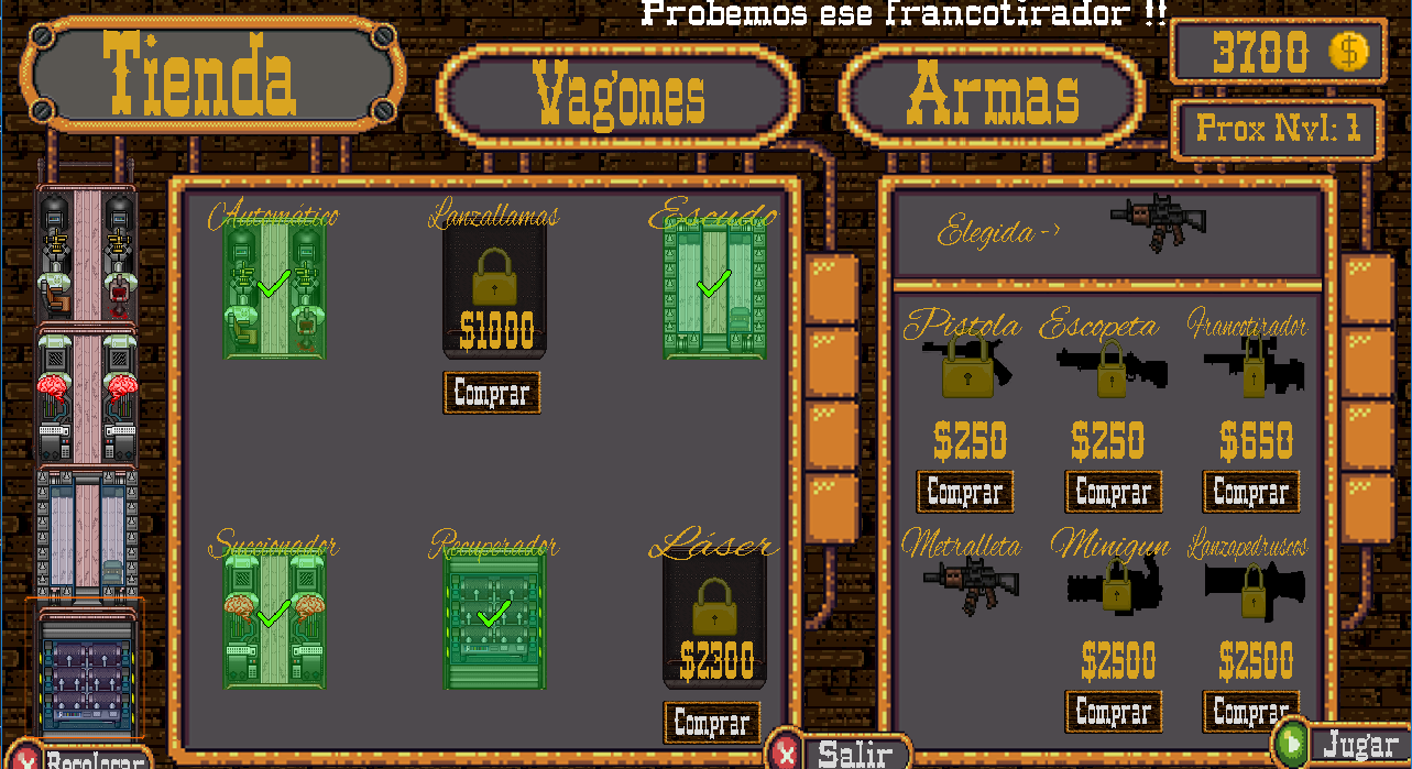 En el juego podrás disfrutar de tres modos de juego: En primer lugar, el modo Historia en el cuál guiarás a nuestro protagonista Sam en su ardua tarea de salvar al país de la epidemia que lo asola. En este modo tendrás la posibilidad de acceder a la tienda. En ella podrás adquirir vagones que colocarás en tu tren y armas. Cada objeto tiene su precio. El dinero se conseguirá matando a los enemigos.